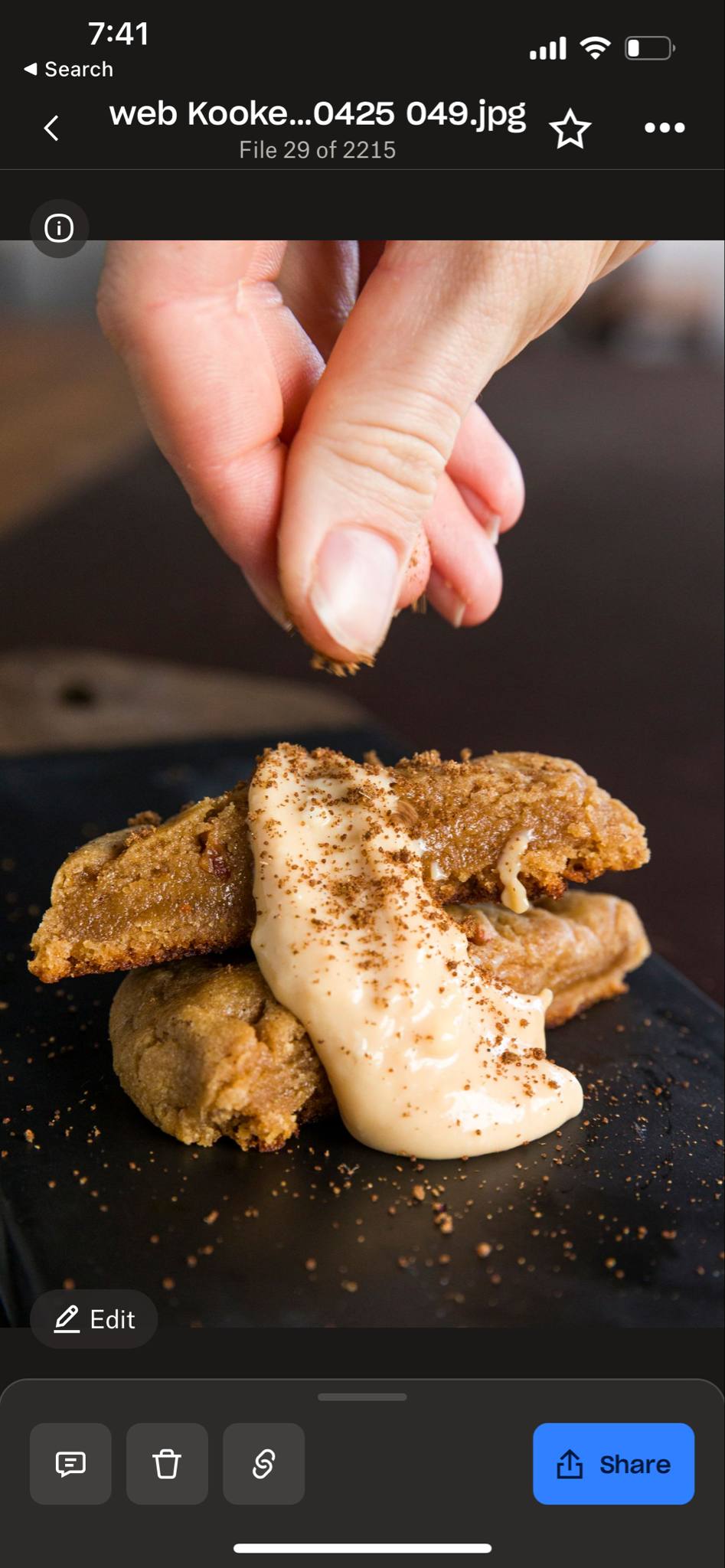 This cookie looks and tastes exactly like warm hot cross bun. Its filled with orange zest and spices with a gooey burnt caramel cream cheese centre. The cookie is rolled in spices before baking and covered with the classic cross.
