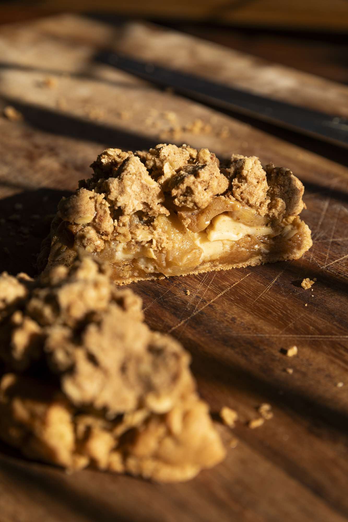 Honouring my Nanna's apple crumble this cookie is a nostalgic twist on the classic dessert. A spiced brown butter oat dough filled with baked nutmeg custard, stewed apples & miso caramel. Topped off with a cinnamon baked crumble.