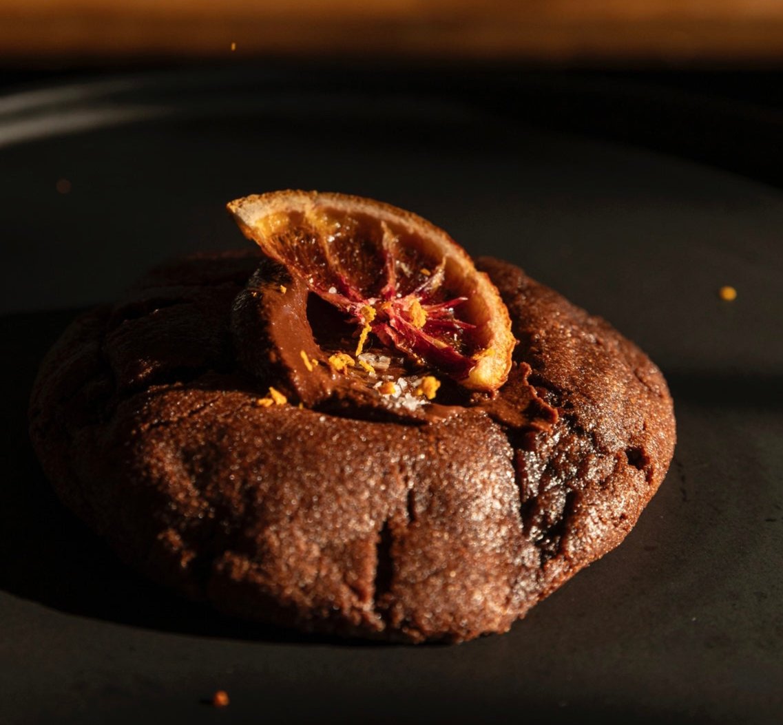 Chocolate orange is making a comeback and its this clementine cookie thats gonna do it justice. A sicilian orange dark chocolate dough filled with cointreau dark chocolate (75%) mousse topped with citrus.